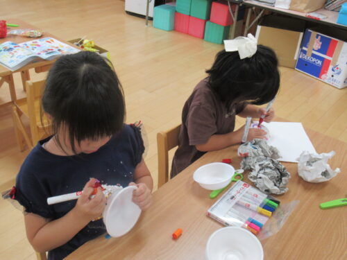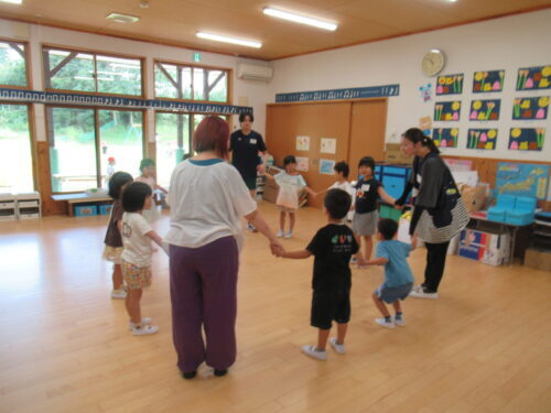 見せてあげましょう♪青組のレッスンを♪見せてあげましょう♪リーダー青組の力を!!!すっ凄い💦💦💦 まだ いるよぉ~っうさぎ組💦レッスン後は…お祭りごっこの準備作業♪青組さんの切り替えの力…