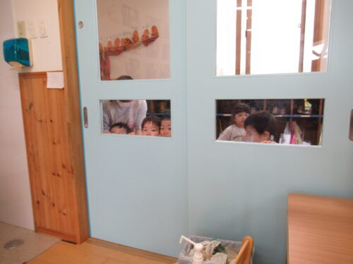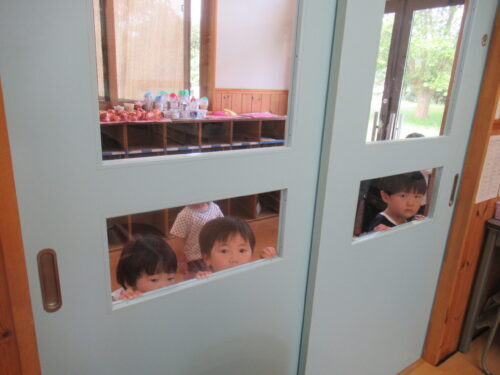 じーっ キョロっ じーっうさぎ組さんが見にきてるぅ~