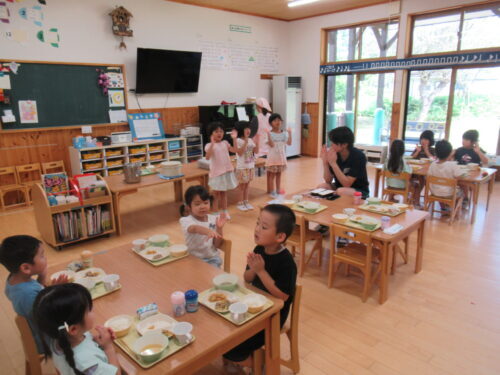 炸裂してまぁ~す✨給食タイム!今日は女子会のようです💕