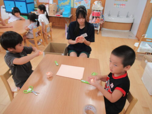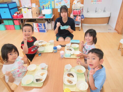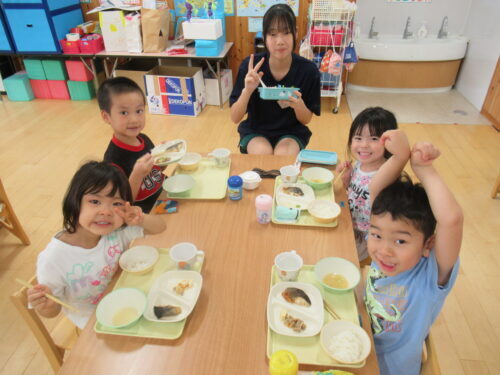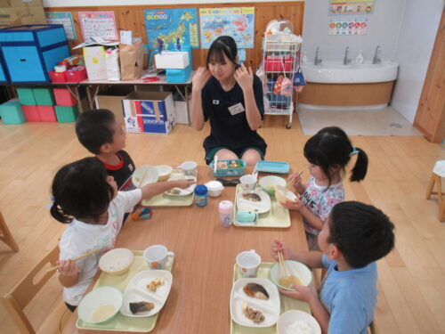 給食タイム!5歳の若者が何をお話するのでしょうか???