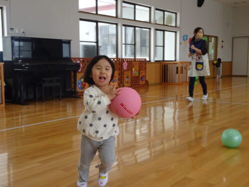 ホールで遊んでいました♪