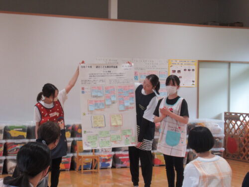 協議が終わり…グループ発表✨どちらのグループも良く頑張ってくれました💕こども園訪問の評価は…「ひ・み・つ」先生方ご苦労様でした💕