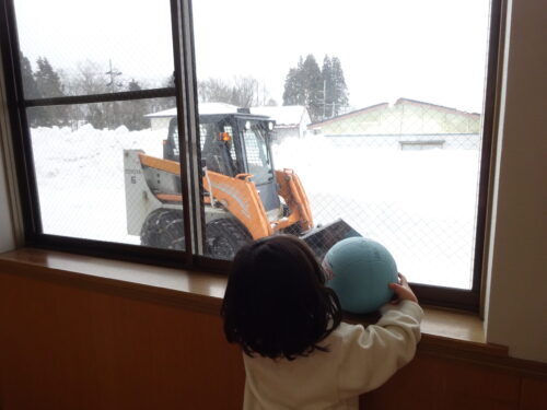 ボール遊びしながら除雪の応援💕