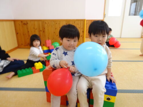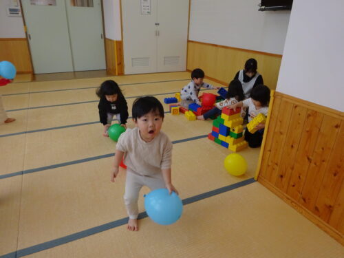 午睡室で風船遊び♪