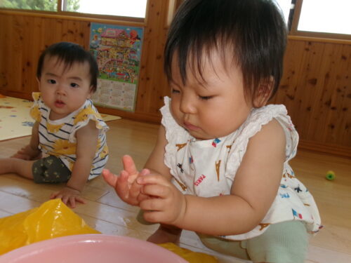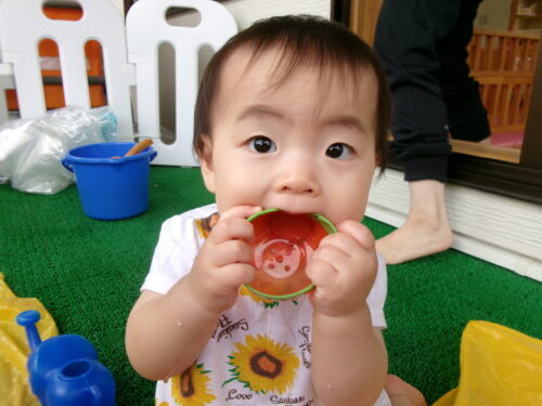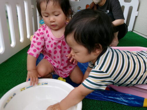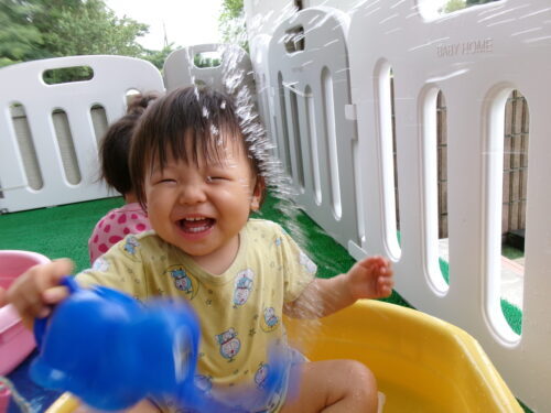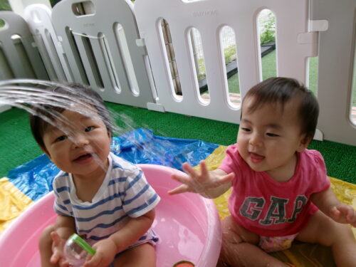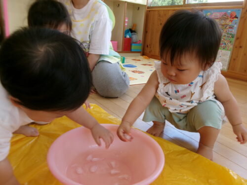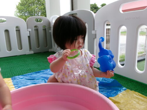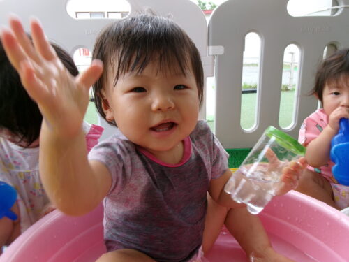 室内での水遊び♪