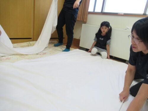 晩御飯の後は… 寝床作り…重要なミッションに入りました💦シーツ&枕カバーコーナーです…
