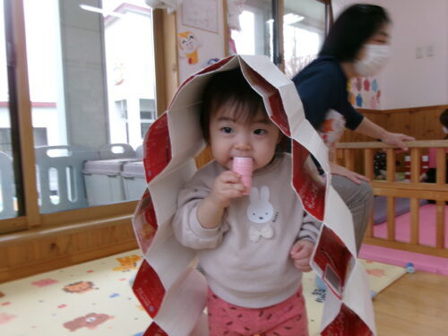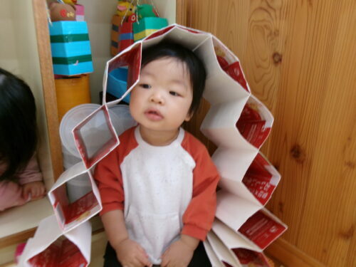 ブーム・・・ 今日のひよこ組さんは… お部屋でのんびりと過ごしています💕 のんびり・・・💦 のんびりではないですね💦 でしょう!!! 楽しく過ごしているだね💕 ひよこのブーム♪ とりあえず… かぶってみるか? 似合うかしら💕 関連