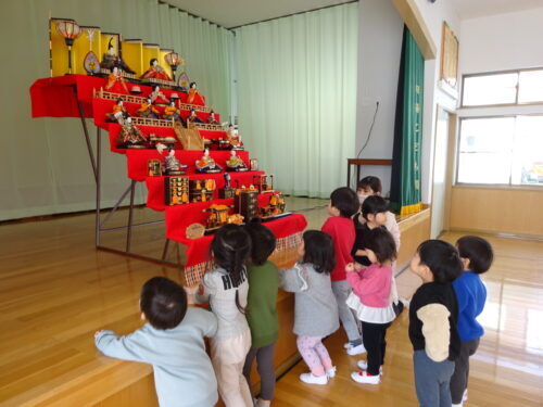 帰り道…お雛さまと遭遇💕 今日も元気に過ごしたうさぎ組さんなのでした。