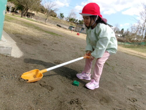 砂を掘る…