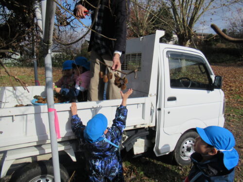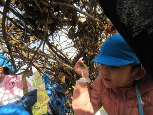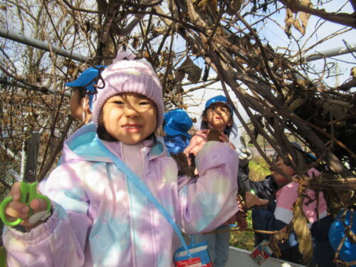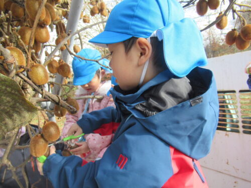 2班に分かれて交代で高いところ収穫しようね💕