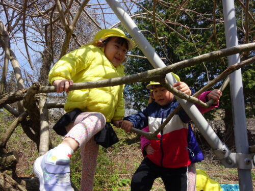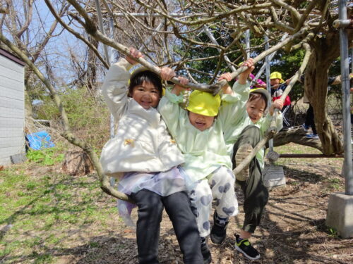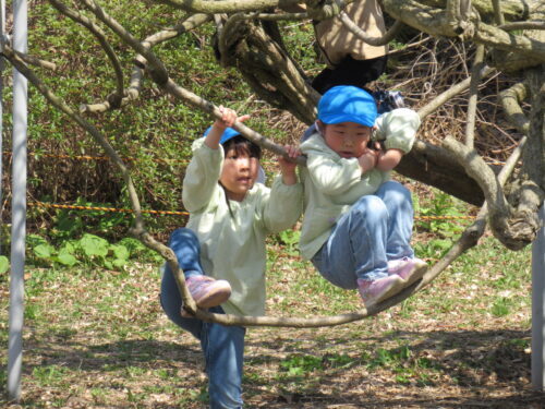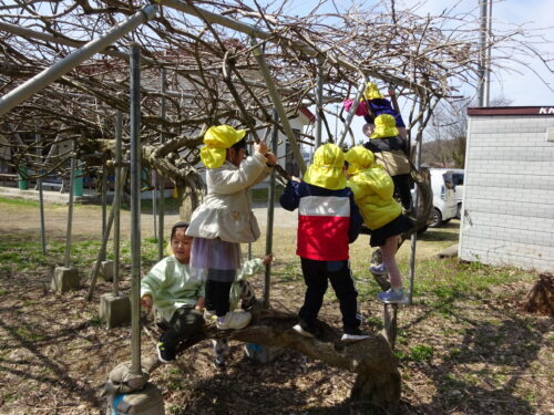 青組さんが藤棚遊び…