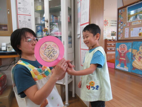最後は園長先生へ…お祭りごっこ来てください💕