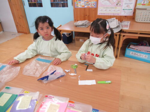 架け橋交流授業(授業参観)に向けて遊び道具を修正中💕