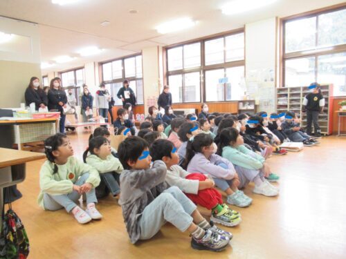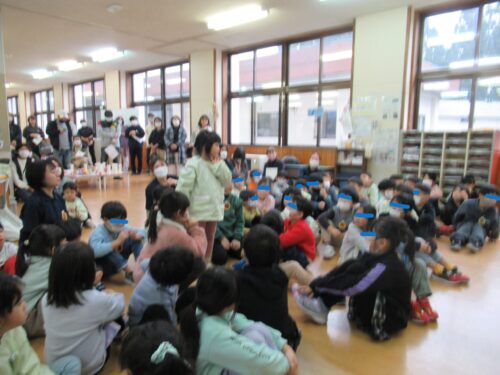 交流授業スタートって時間前だけど💦 ※あまりにも立派な児童・園児の皆さんの気合に負けました💕