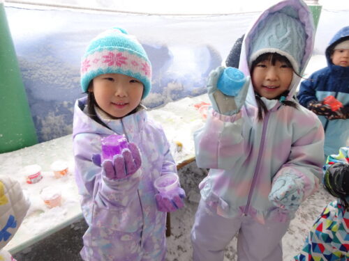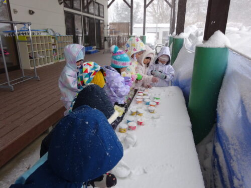 氷・・・ 今日は冷えましたね💦 除雪もなかなか追いつきません💦 黄組さん…何かを発見! 嬉しそうです💕 じゃじゃーん♪ ゼリーみたいな氷! とっても嬉しそうな! 黄組さんなのでした💕にんまり・・・ 関連