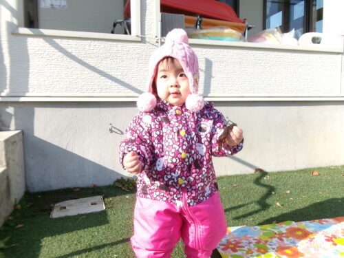 繰り返し・・・ 前日ネタです💦 SUNSUNCLUBのひよこ組さん… 外遊びです💕 しかもジャンプスーツ着ています♪ このジャンプスーツの脱着が… 冬本番にいきてきます♪ 帽子もしっかりかぶっていますね💕 関連