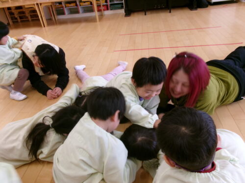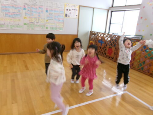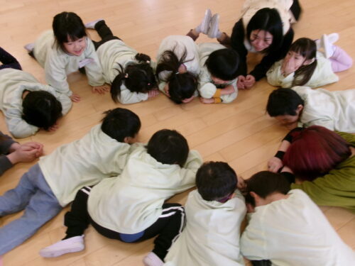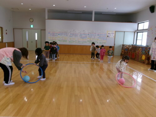 レッスン終了後…ホールに移動しフラフープボールリレーです💦