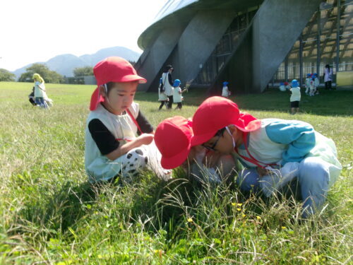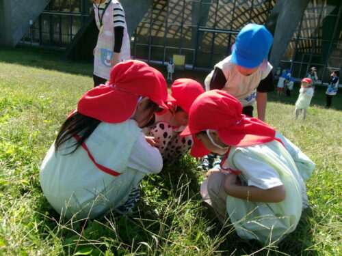 さすが赤組…どこでも虫取りに夢中になれます💕