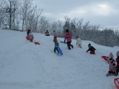 そうそう💕みんなでソリゲレンデ踏み固めてください。