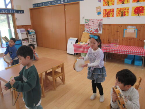 部屋にもどり楽器で遊ぶ青組さん! また何か動き始めた💦